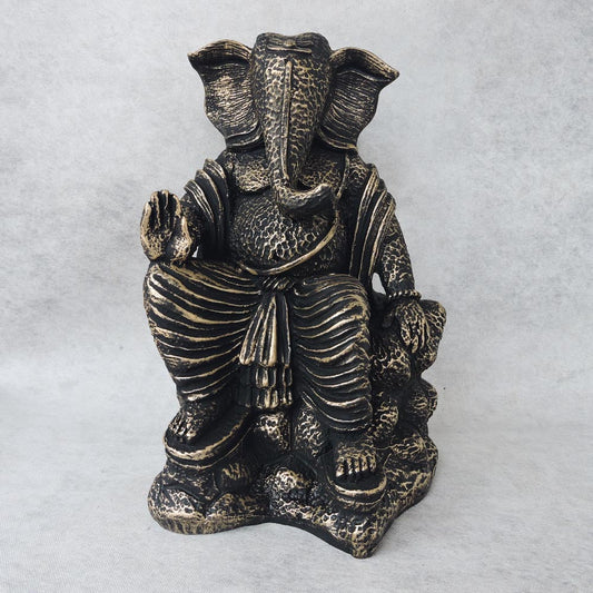 Ganesha Sitting On Stone / Metallic by Satgurus